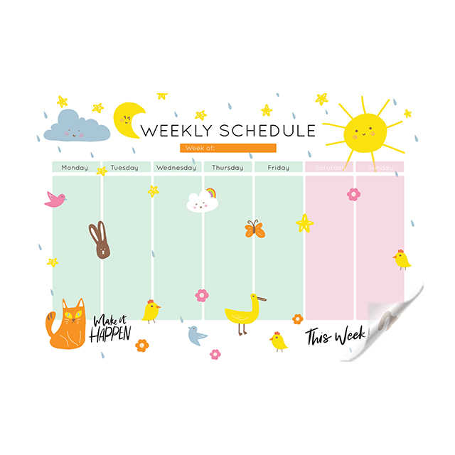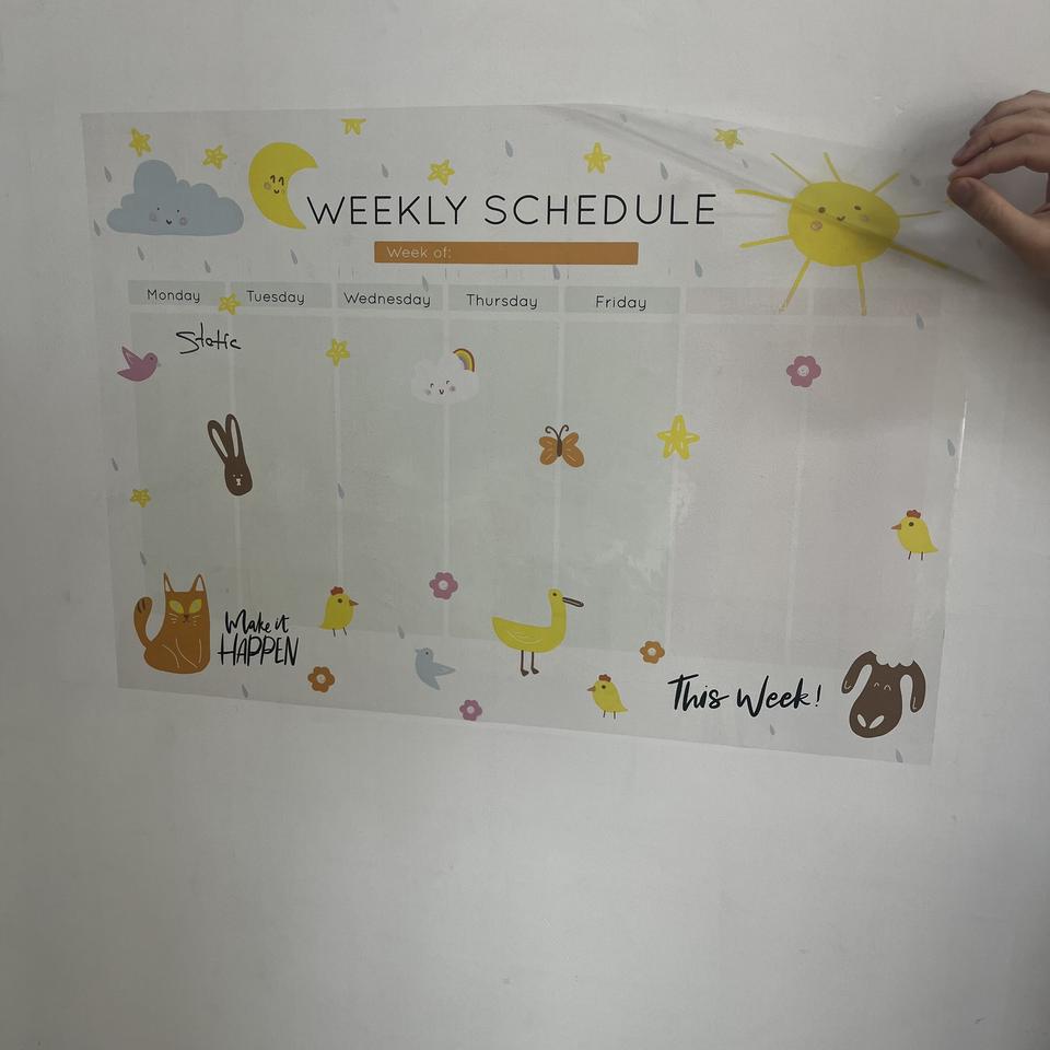 2024 Model-7 Weekly Planner Dry-Erase Reusable PET Wood Whiteboard Polystyrene Whiteboard Surface with Static Glass Magnet