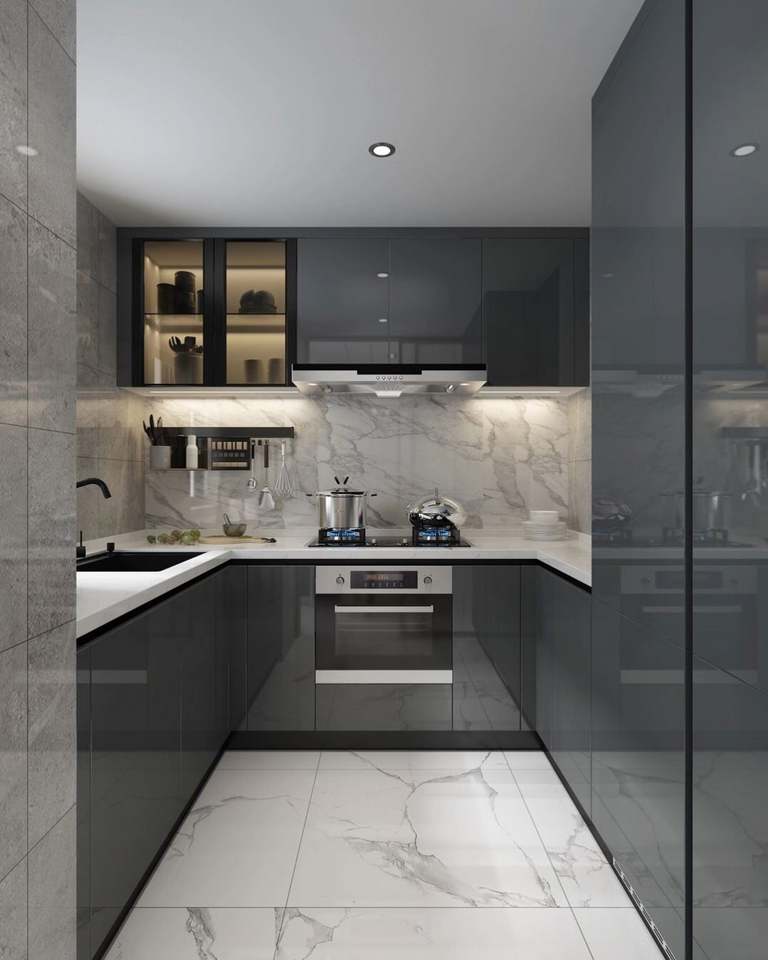 Lacquered, White, Laminate, Black, High GlossCabinet Finish