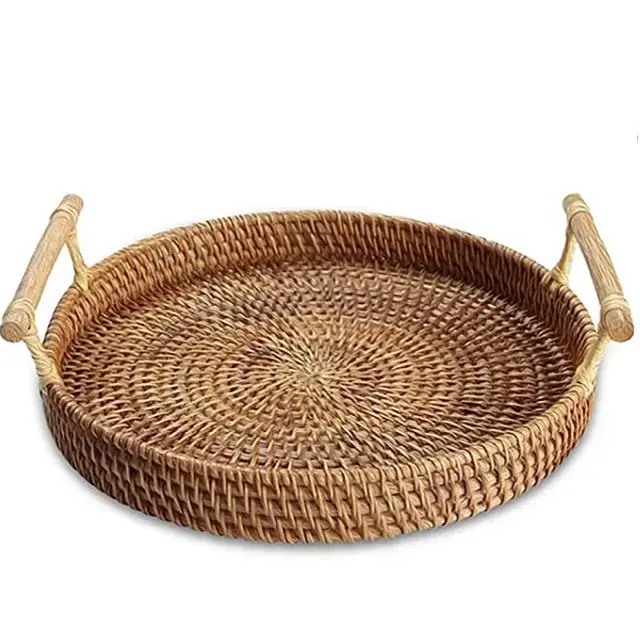 2024 Modern Handcrafted Rounded Rattan Basket with Handle Sea Grass Basket Handmade Elegant Home Kitchen Storage Holding Usage