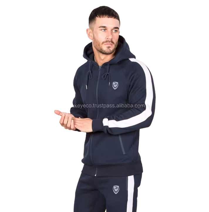 2025 wholesale Navy Blue Custom Training Jogging Comfortable Zipper Hoodies Suits Two Piece Set Tracksuits for Men