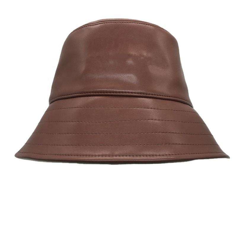 2024 New Arrival Factory Supply PU Plain Leather Bucket Hats Quality Leather Hat for Adults