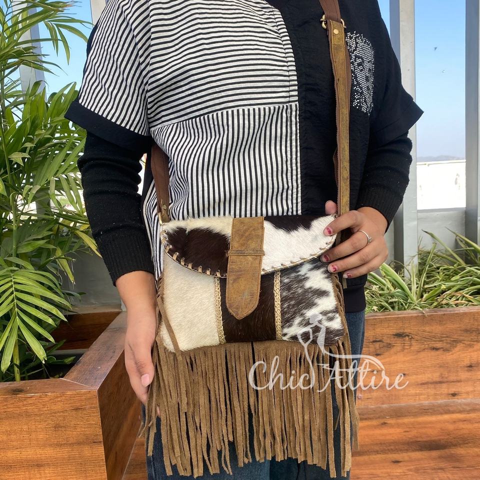 Product name:Cowhide Leather Crossbody Fringe Bag