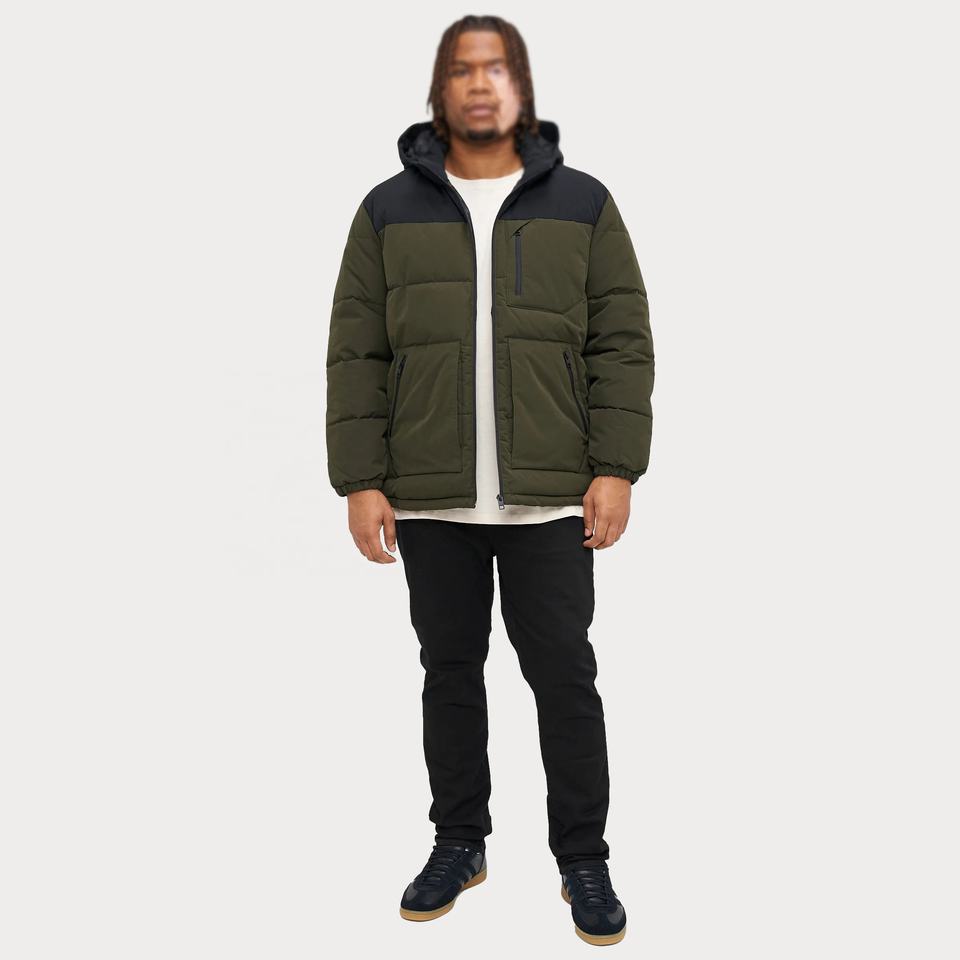 2024 New Arrival Men's Custom Puffer Jacket High Street Style Winter Thick Windproof 100% Nylon Stand Collar Pattern Decoration