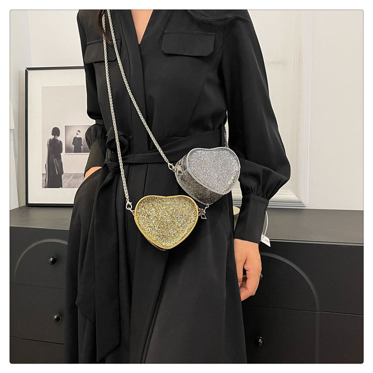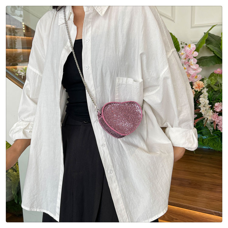 brand name:Wholesale Heart Shaped Rhinestone Purses Chain bag