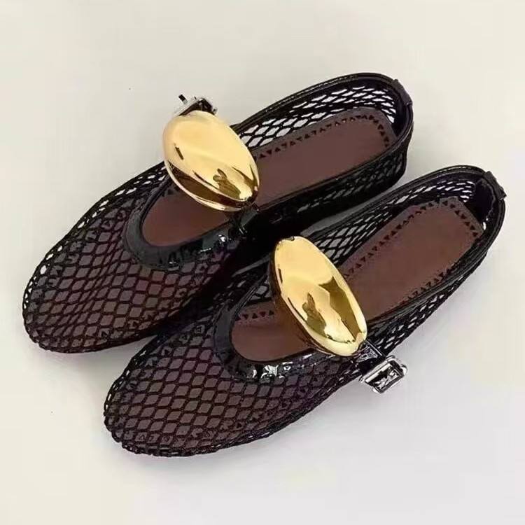 2024 New Ballet Flat with Buckle Strap Mesh Hollow Breathable Spring Summer Large Size Round Toe Fashion Single Shoes