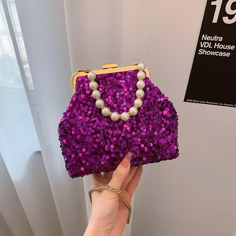 2024 New Bling Bling Women Fashion Sling Bags Shell Shaped Sequined Shoulder Bags With Pearl Handle Wholesale