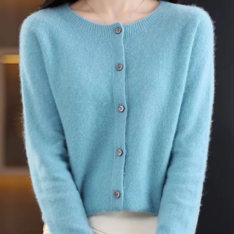 2024 New Chic Women's Basic O-neck Cardigan Spandex/Polyester Anti-Pilling Thick Soft Knitwear Coat Winter Front Logo