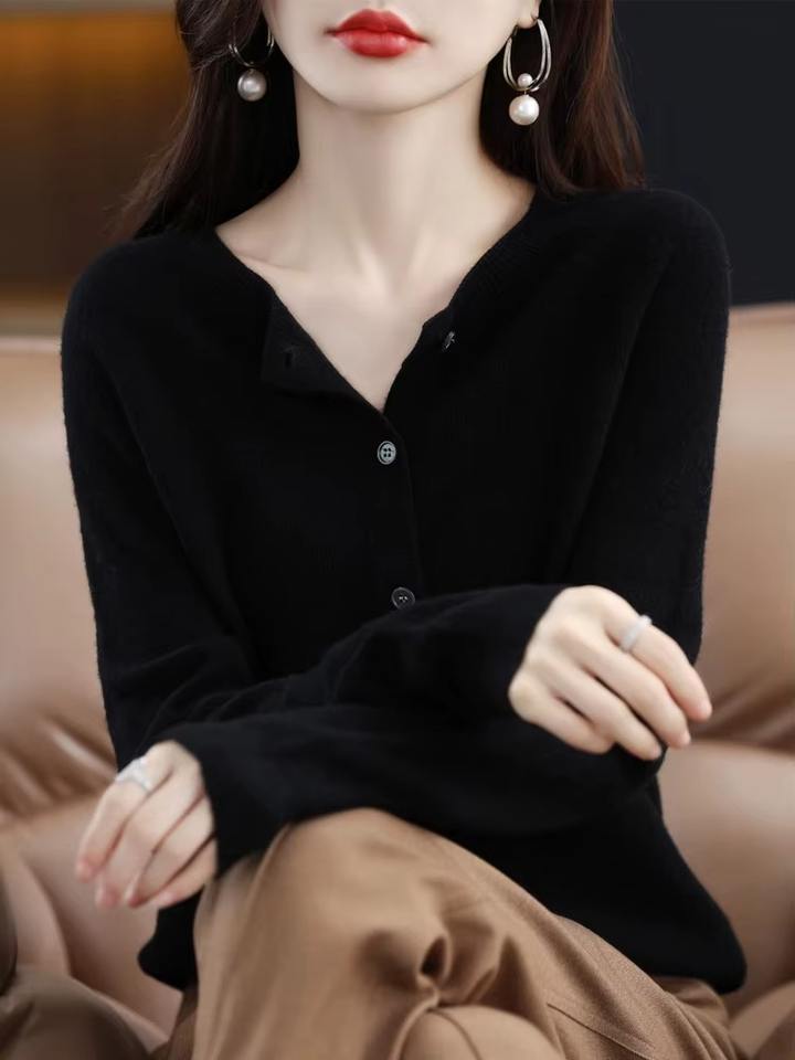 2024 New Chic Women's Basic O-neck Cardigan Spandex/Polyester Anti-Pilling Thick Winter Front Logo Sweater Soft Knitwear Coat
