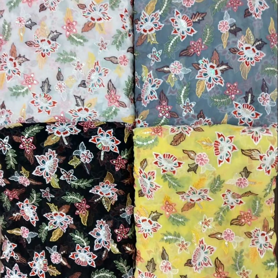 2024 New Classical French Wedding Embroidered Beaded Lace Fabric Sequins on Georgette