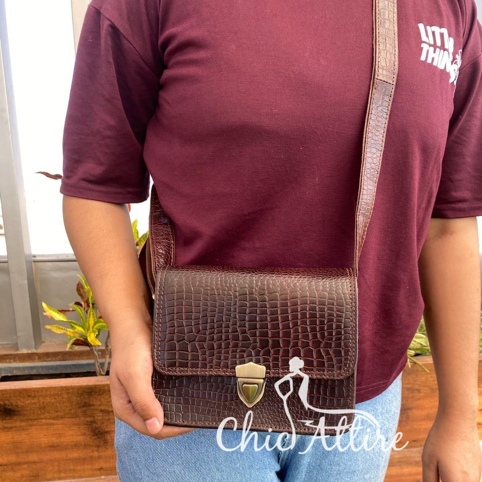 Crocodile Pattern Genuine Leather Crossbody Bag