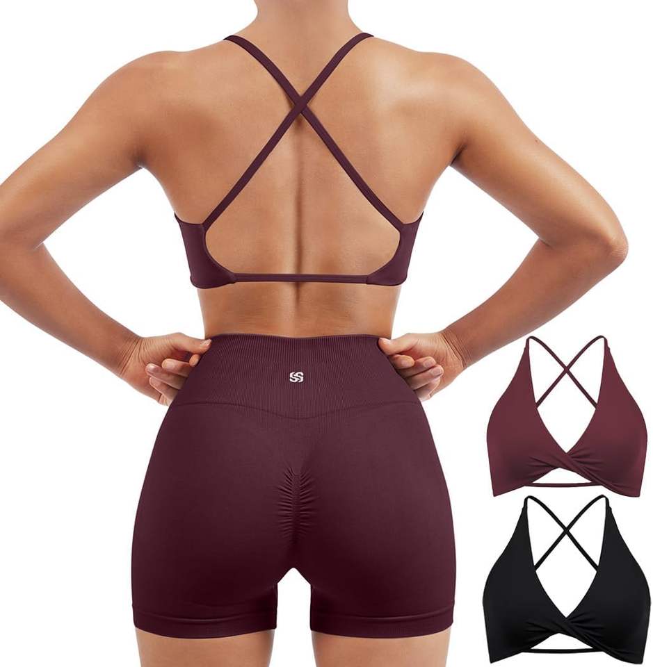 2024 Women's Active Sports Yoga Bra New Cross Straps Low for Impact Push Solid Colors Breathable Removable Waterproof Garment
