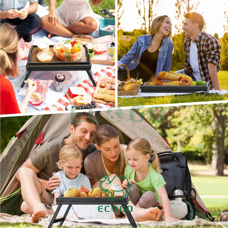 2024 New Design Factory Solid Wooden Lap Desk Snack Tray with Foldable Legs Bamboo Bed Tray for Kitchen Living Room