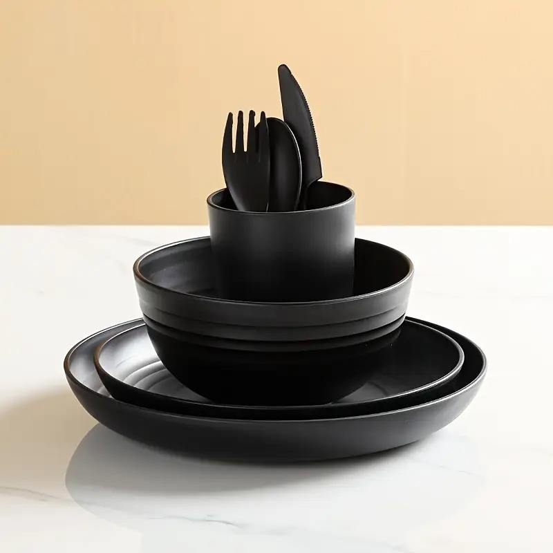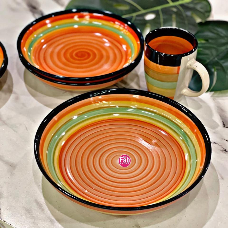 Badem 27 cm Yellow Ceramic Flat Plate Customizable Tableware Dinnerware Salad Plate Set for Restaurant Kitchen Use