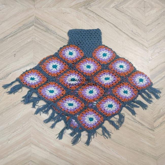 2024 New Designer Yarn Dyed Floral Pattern Crochet Ponchos/Jackets for Women Acrylic Woolen Winter Wear Wholesale From India