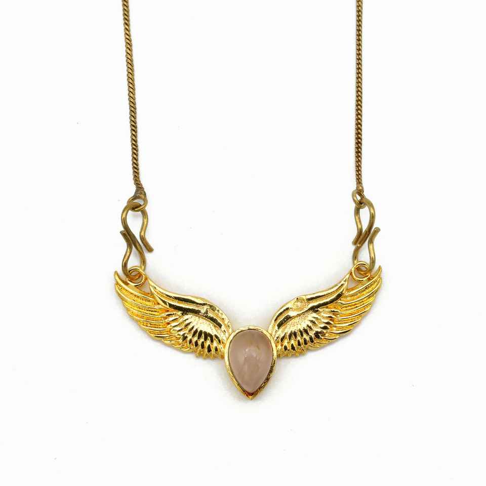 2024 New Fashion Pear Shape Grey Moonstone Necklace 18K Gold Plated Angel Wings Trendy Jewelry Pendant Women With Rope Chain