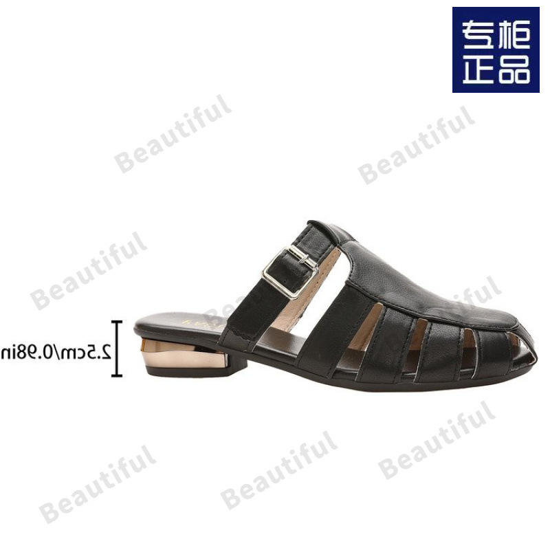 2024 New Fashion Women's Low-Heeled Ankle Strap Sandals PU Insole Closed-Toe Half-Slippers for Summer Leisure