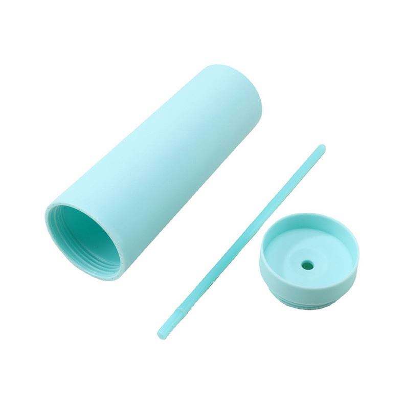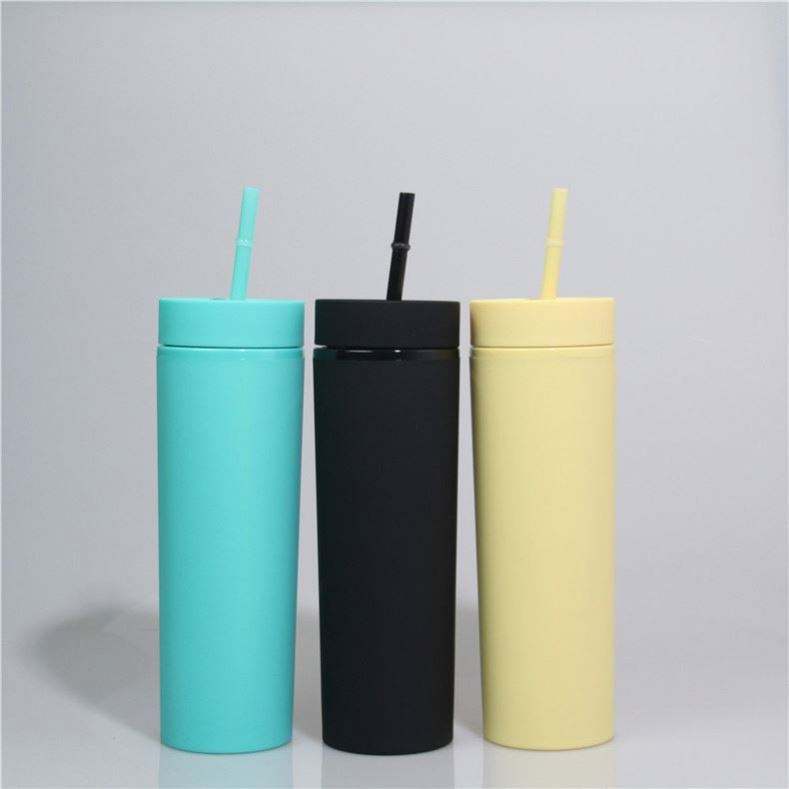 2024 New Frosted Double Plastic Cup Simple and Convenient Water Cup 16OZ Straight Straw Cup With Lid and Straw