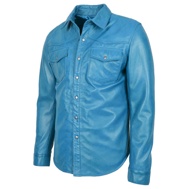 2024 New High Quality Men's Leather Shirt Real Sheep Skin Full Sleeve Breathable Comfortable Fashionable Design Short Sleeves