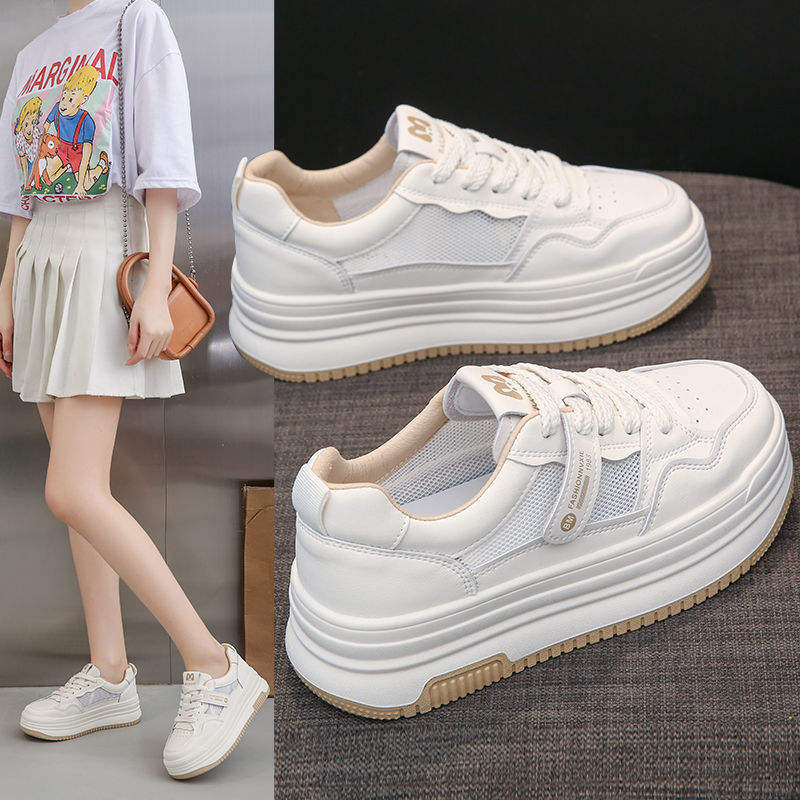2024 New Hot Style Women's Sports Shoes Summer Mesh Breathable White Sneakers with Thick Bottom and Round Toe PVC Insole