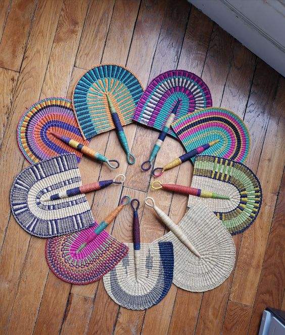 2024 New Item Colorful Woven Seagrass Fans Wall-hanging with Wrapped Handle for Home Decoration From Vietnam