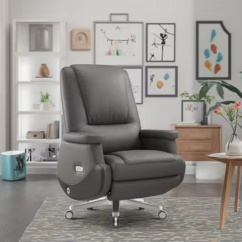 2024 New Luxury Boss Office Chair Grey PU Leather Reclining with Footrest Ergonomic Executive Chair