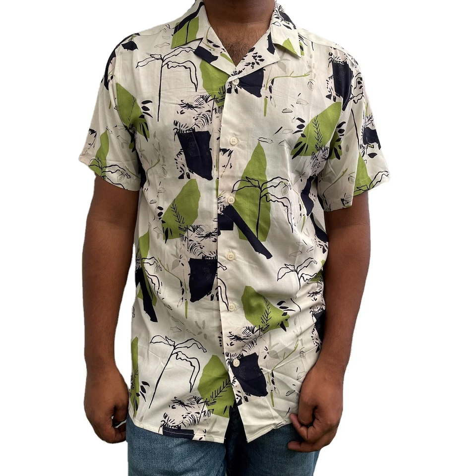 2024 New Men's Hawaiian Floral Printed XXL Flannel Shirts 100% Viscose Short Sleeve for Polo Collar for Autumn Beach Holidays