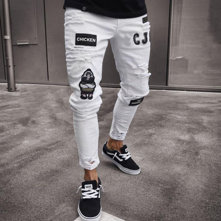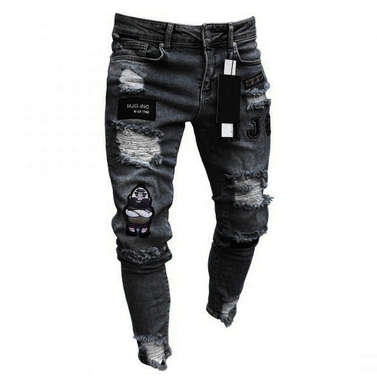 2024 New Men's Jeans Black Trousers Diamond Sequins Men's Trendy Slim Pants Custom Denim Jeans