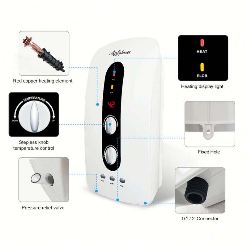 2024 New OEM/ODM 3.5-5.5kW Instant Electric Shower Tankless Water Heater LED Display Plastic Housing for Hotel Household Use