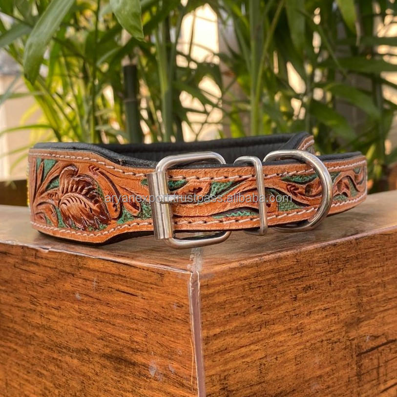 2024 New Personalized Wholesale Luxury Hand Tooled Genuine Leather Comfortable Pet Dog Collar Multi-Purpose Padded Dog Collar