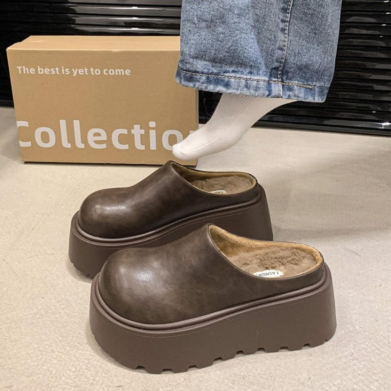 2024 New Plush Toe Half Slipper Thick-Soled Lazy Mule Sandals for Women Height Increasing Outerwear