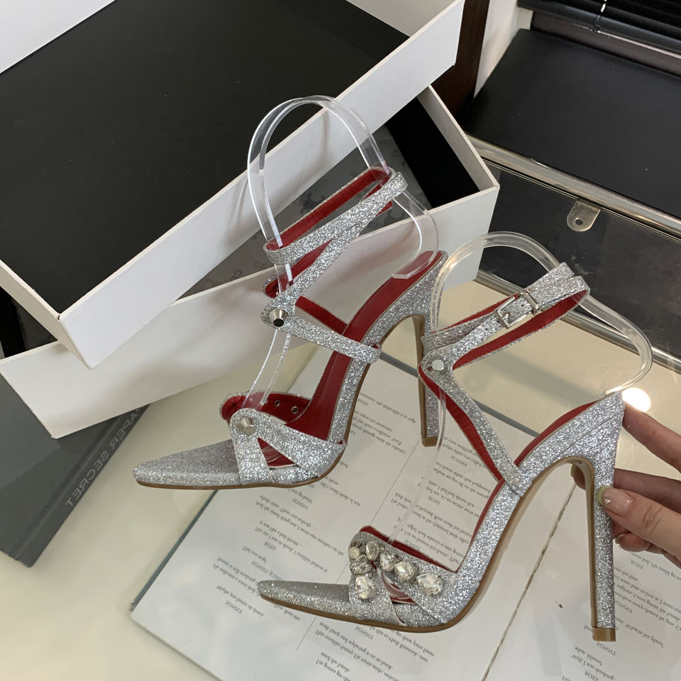 2024 New Pointed Rhinestone Decorative High Heel Women's Sandals Sequined Women's Sandals 35-42