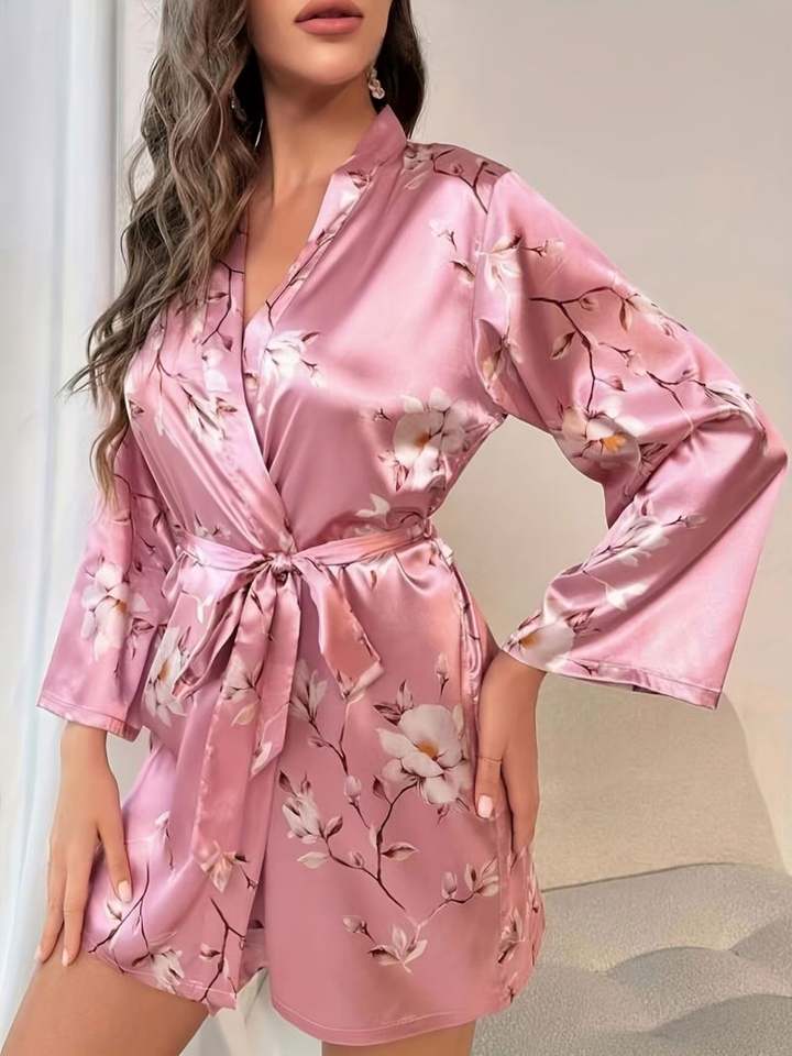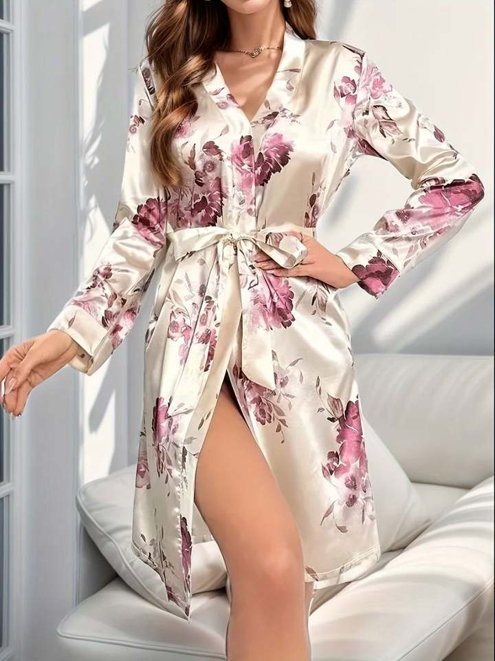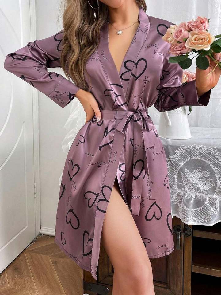 2024 New Product Printed Stain Robe Sexy Women Pajamas Soft Satin Custom Kimono Bathrobe Bedroom Lingerie Sleepwear Pjs