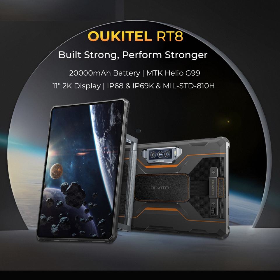 2024 New Rugged Tablet PC 11'' Inch 2K Display Android 13 20000mAh 6GB RAM 256GB ROM Night Vision Pad G99 Waterproof Oukitel RT8