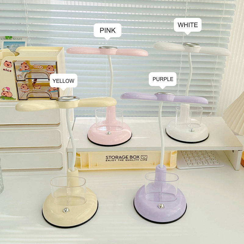 2024 New Simple Bowknot LED Desk Lamp with Pen Holder ABS Material Middle Sized Bedside and Book Light for Bedroom