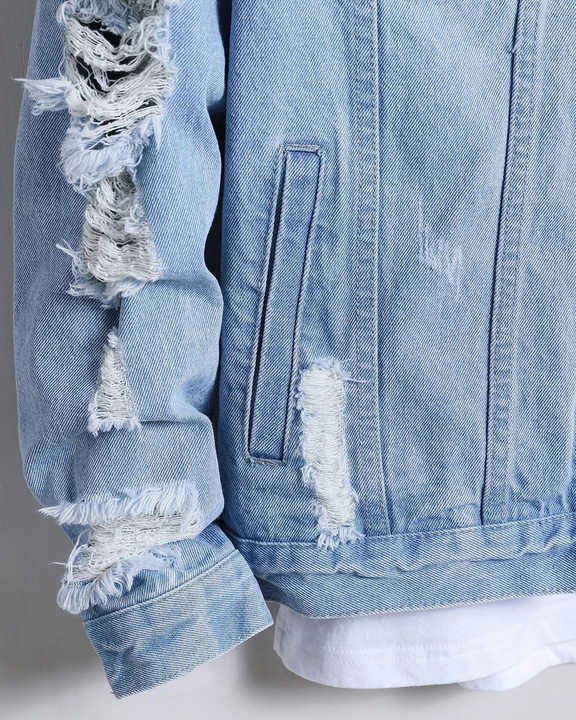 2024 New Wholesale Competitive Fashion Men's Denim Jeans Jacket Men Ripped Frayed Acid Wash Denim Jacket