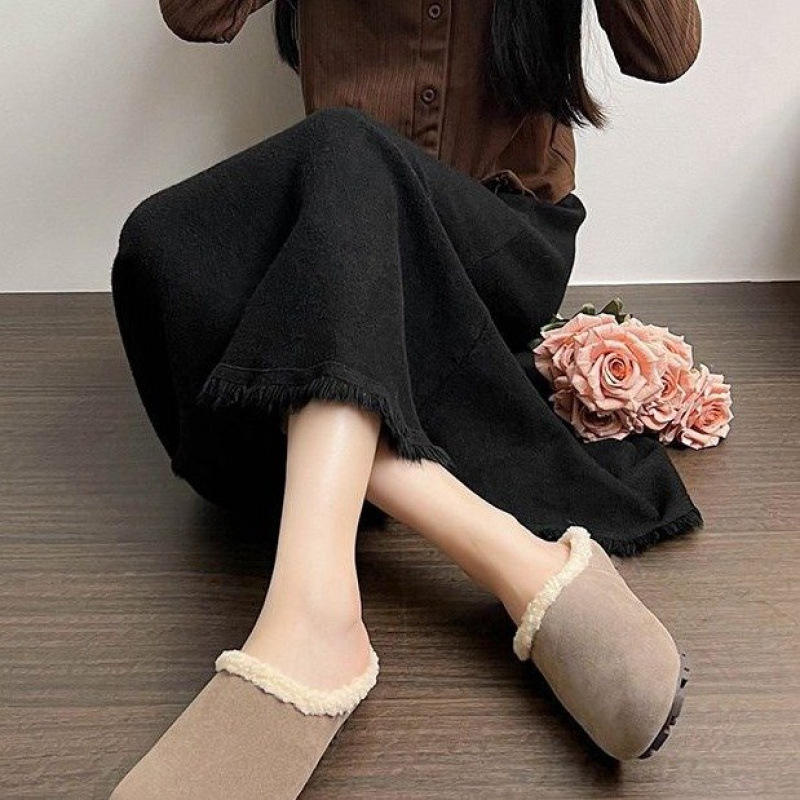 2024 New Winter Thick-Soled Plus Velvet for Birkenstock Half-Slippers for Women Lamb Fur Leopard Print Closed Toe Outerwear Home