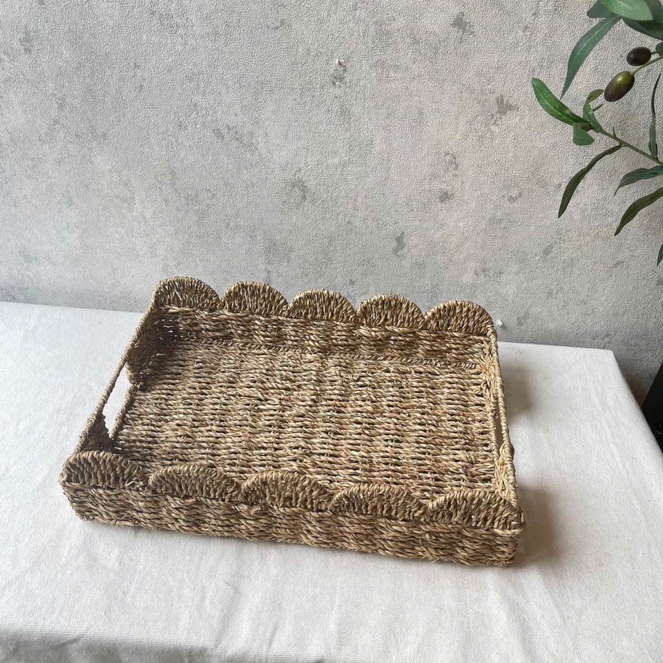 2024 Newest Collection Scallop Wavy Rim Vietnam Seagrass Water Hyacinth Straw Basket Tray Iron Frame for Kitchen Bathroom Use