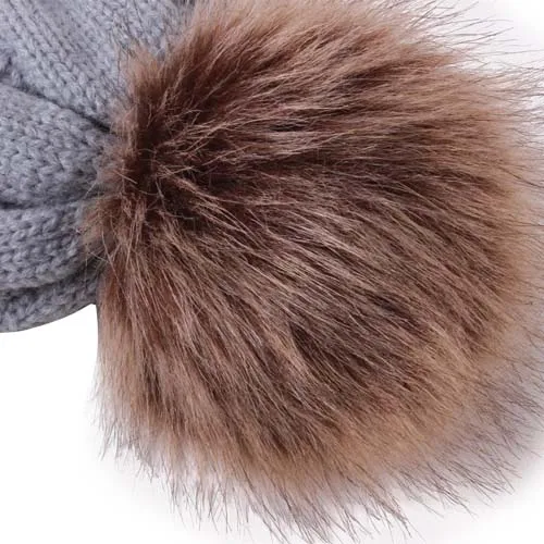 2024 OEM ODM Winter Warm Beanie Hat Faux Fur Pom Handmade Knitted Image Style Adjustable Unisex Children's Travel