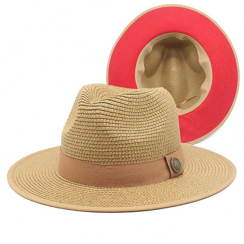 2024 Outdoor Women Unisex Fall Summer Sun Paper Straw Braid Sombrero Floppy Red Bottom Fedora Beach Panama Straw Hats for Men