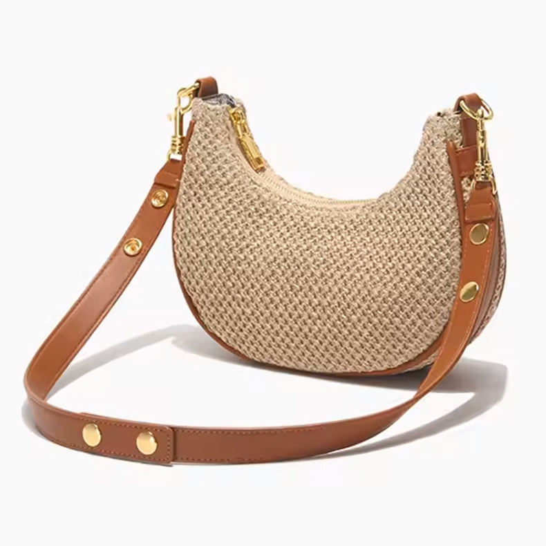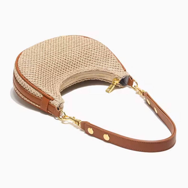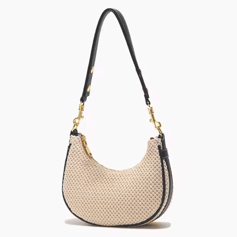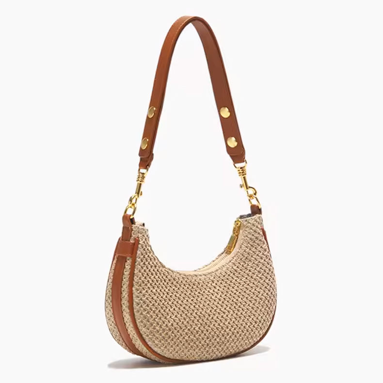 Straw Bag for Women Fashion Half Round Handmade Woven Armpit Bag Handbag