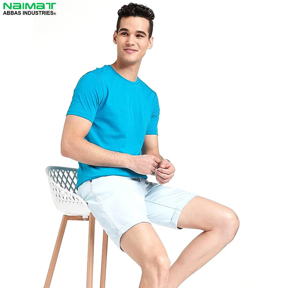 2024 Plus Size Summer Men's T-shirt 100% Cotton High Quality Breathable Eco-Friendly Casual O-Neck Short Sleeve Solid Blue