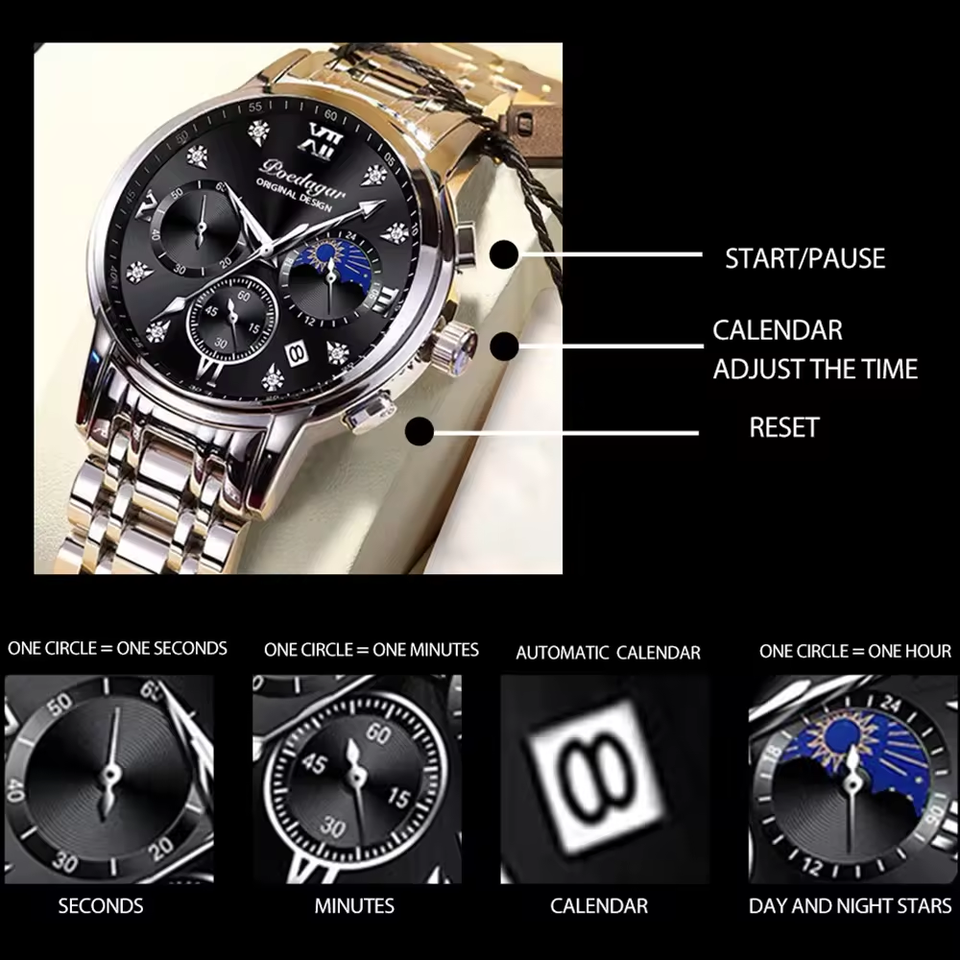 2024 Poedagar Men's Luxury Stainless Steel Watch New Fashion Waterproof Luminous Quartz With Dial and Business Band