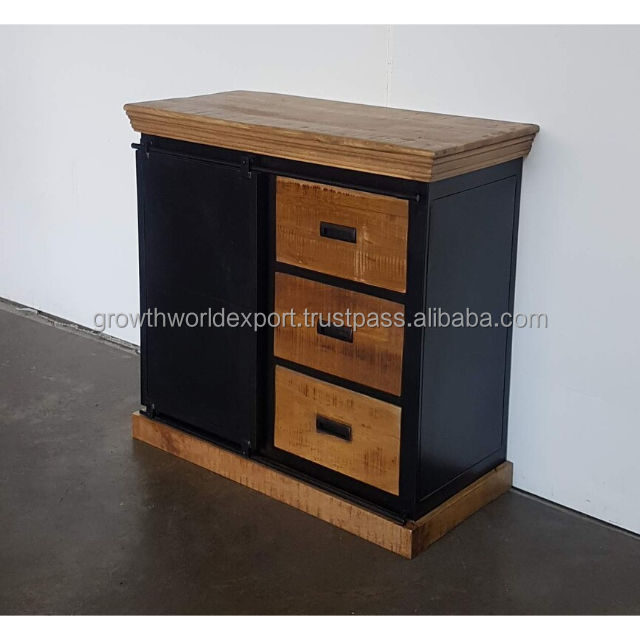 2024 Premium Handmade Industrial Iron Cabinet 3 Stylish Solid Drawers 1 Iron Sliding Door for Home Bar Living Room Furniture