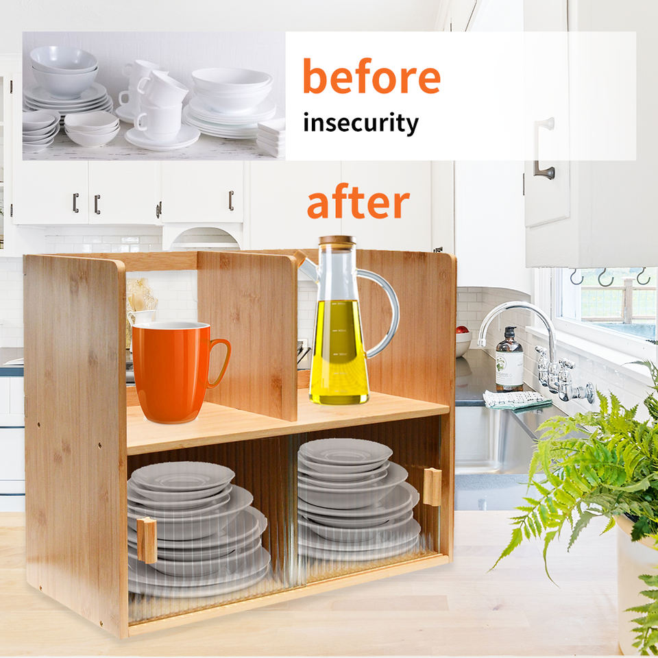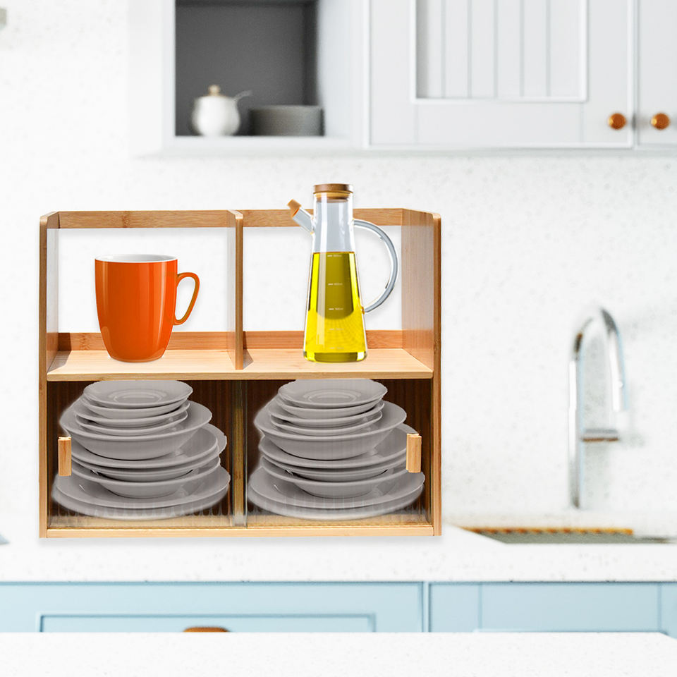 2024 Premium Wholesale High Quality Luxury 2 Tiers Bamboo Cup and Mug Storage Cabinet Rack for Kitchen