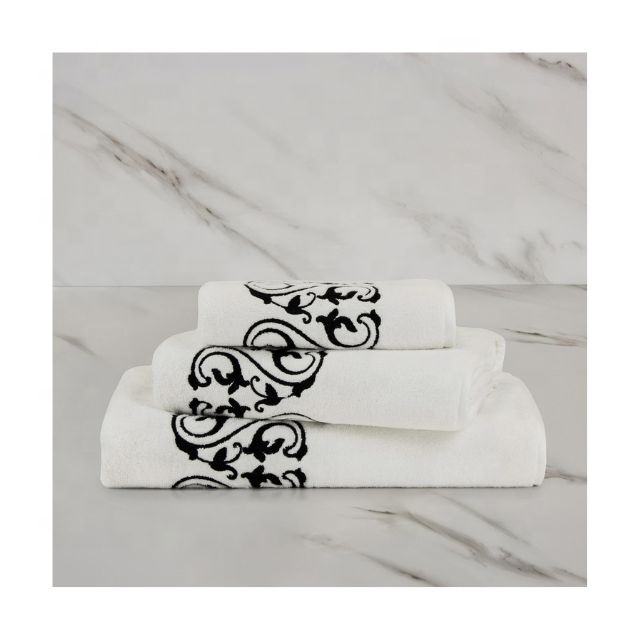 2024 Promotional Branded 100% Organic Cotton Terry Embroidered White Floral Laced Unique Golf Wrap Terry Bath Towel Sets on Sale