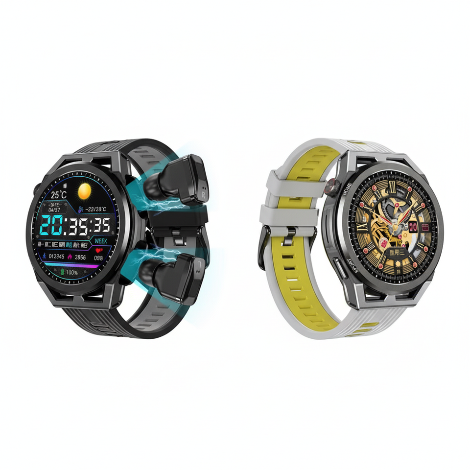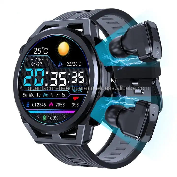 2024 QC T4 2-in-1 TWS Smart Watch Earbuds for Bluetooth Call NJH03 N18 128MB MP3 300mah Big Battery IP67 for Outdoor Sport