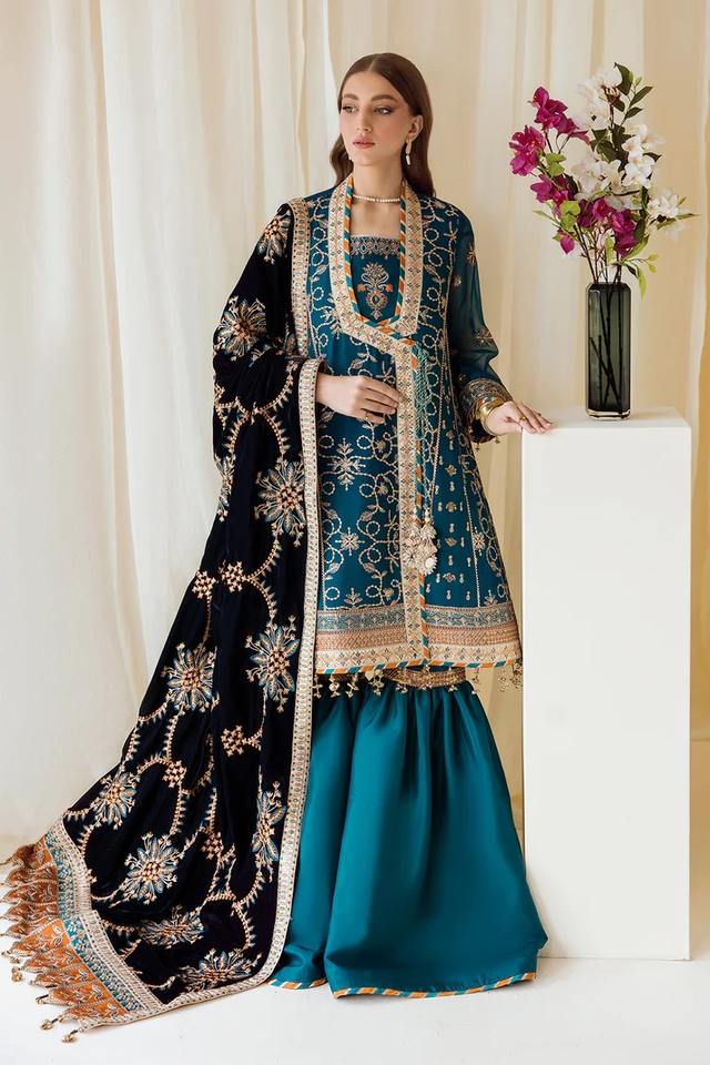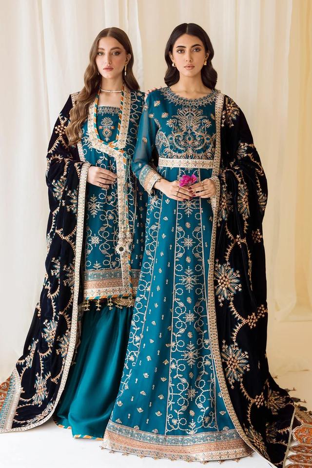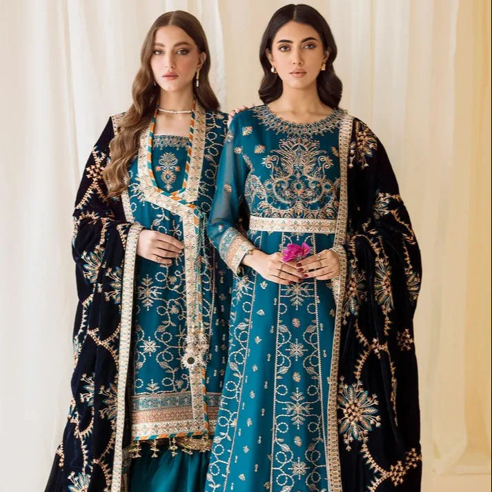 2024 SSUMAIRA COLLECTION Modest Dress Elegant Embroidered Chiffon Party Shirt Long Organza Velvet Shawl Dyed Raw Trouser