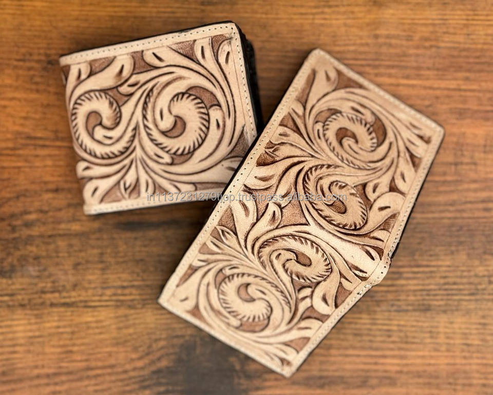 2024 Sale New Hand Tooled Leather Western Pattern Men's Wallets Long Zipper Hot Selling Fashion Stylish Cash Holder Gift for Him