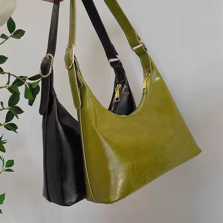 2024 Spring Autumn New Fashion Women's PU Bag Portable Hot Single Shoulder Underarm Zipper Closure PVC Lining Canvas Winter