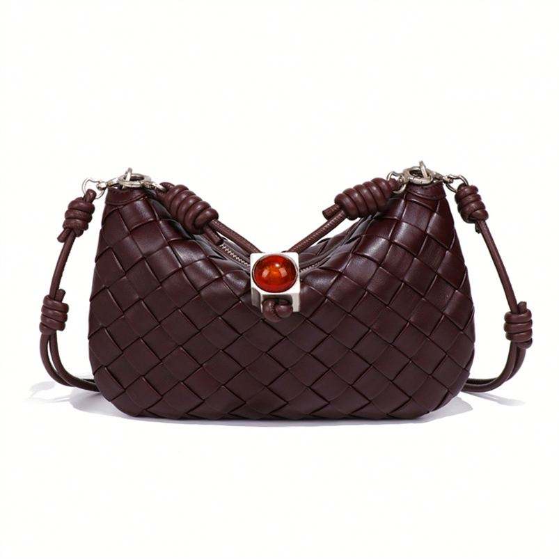 2024 Spring and Summer New Fashion Women's Bag Handmade Woven Bag Lock Buckle Charm Soft Leather Single Shoulder Crossbody Bag